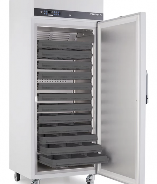 El refrigerador farmacéutico MED 720 PRO-ACTIVE impresiona con su generosa capacidad de 700 litros y sus innovadoras funciones para el almacenamiento seguro de medicamentos sensibles. El innovador sistema de descongelación rápida garantiza ciclos de descongelación extremadamente cortos y minimiza las fluctuaciones de temperatura. Sus datos se pueden leer rápida y fácilmente a través del puerto USB integrado, lo que garantiza una documentación fiable.